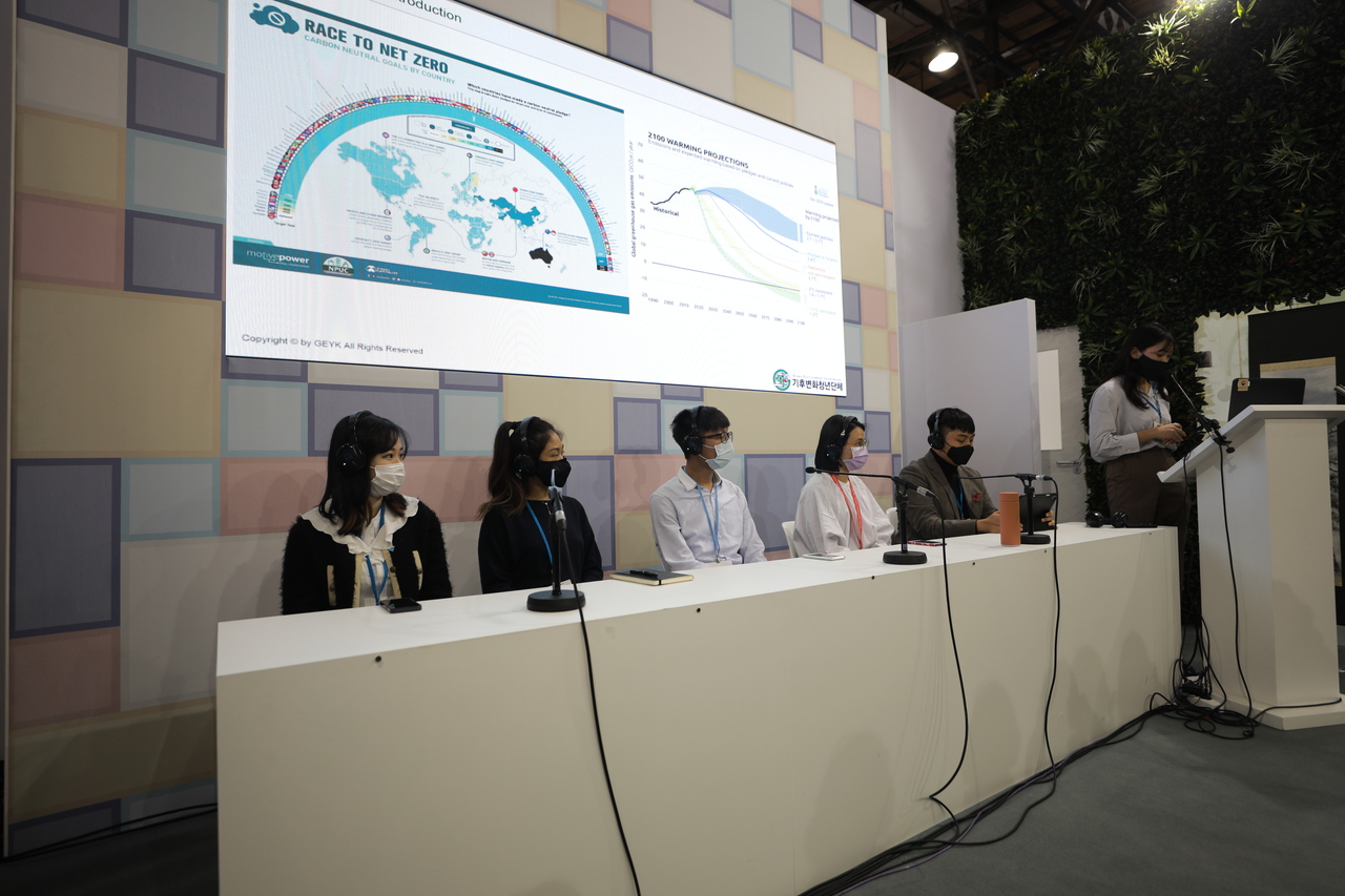 聯合國第26屆氣候大會進行同時,南韓國家館在英國時間10日舉行「亞洲青年碳中和對話」論壇,來自南韓、日本、香港與台灣的青年氣候團體展開交流,分享各自國家的碳中和政策,其中「台灣青年氣候聯盟」(Taiwan Youth Climate Coalition,TWYCC)也受邀分享我國面臨的氣候挑戰,在國際氣候舞台發聲。