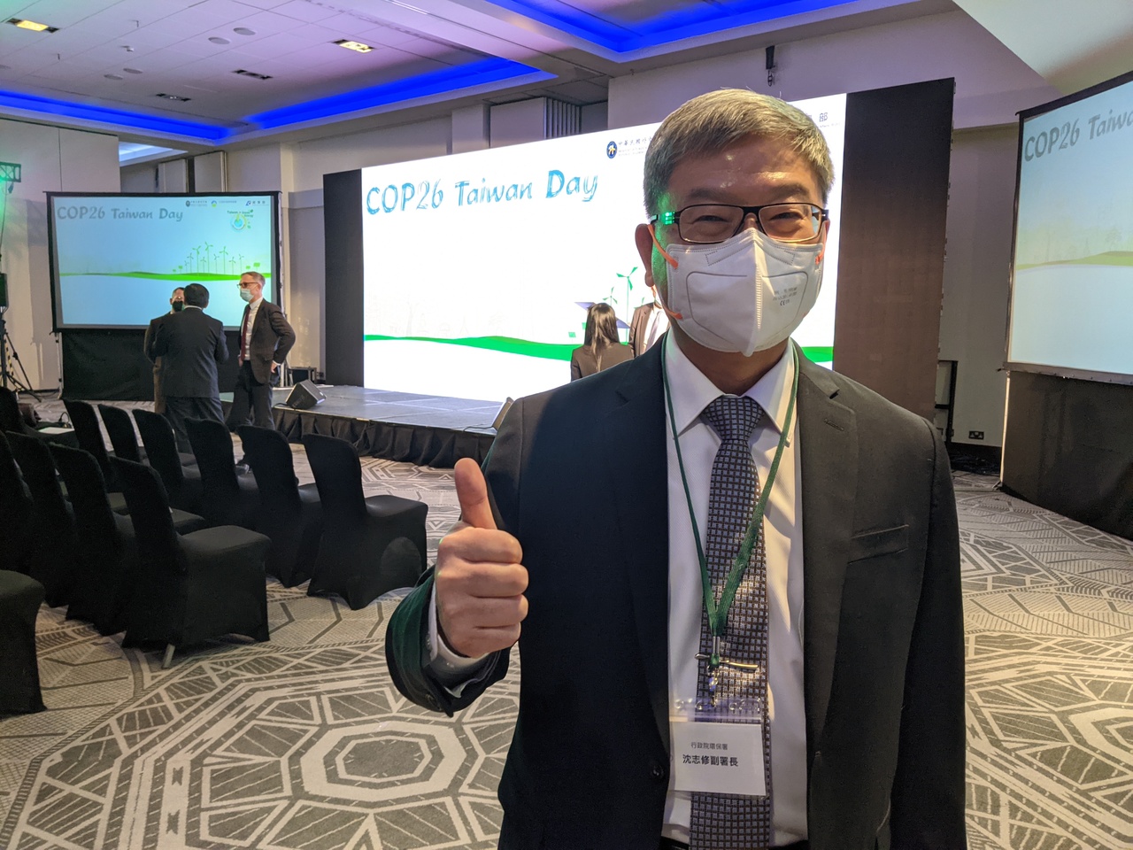 台灣COP26代表團團長及環保署副署長沈志修將和國際分享,台灣在對抗氣候變遷問題上的作法。 特派記者林奐成/攝影