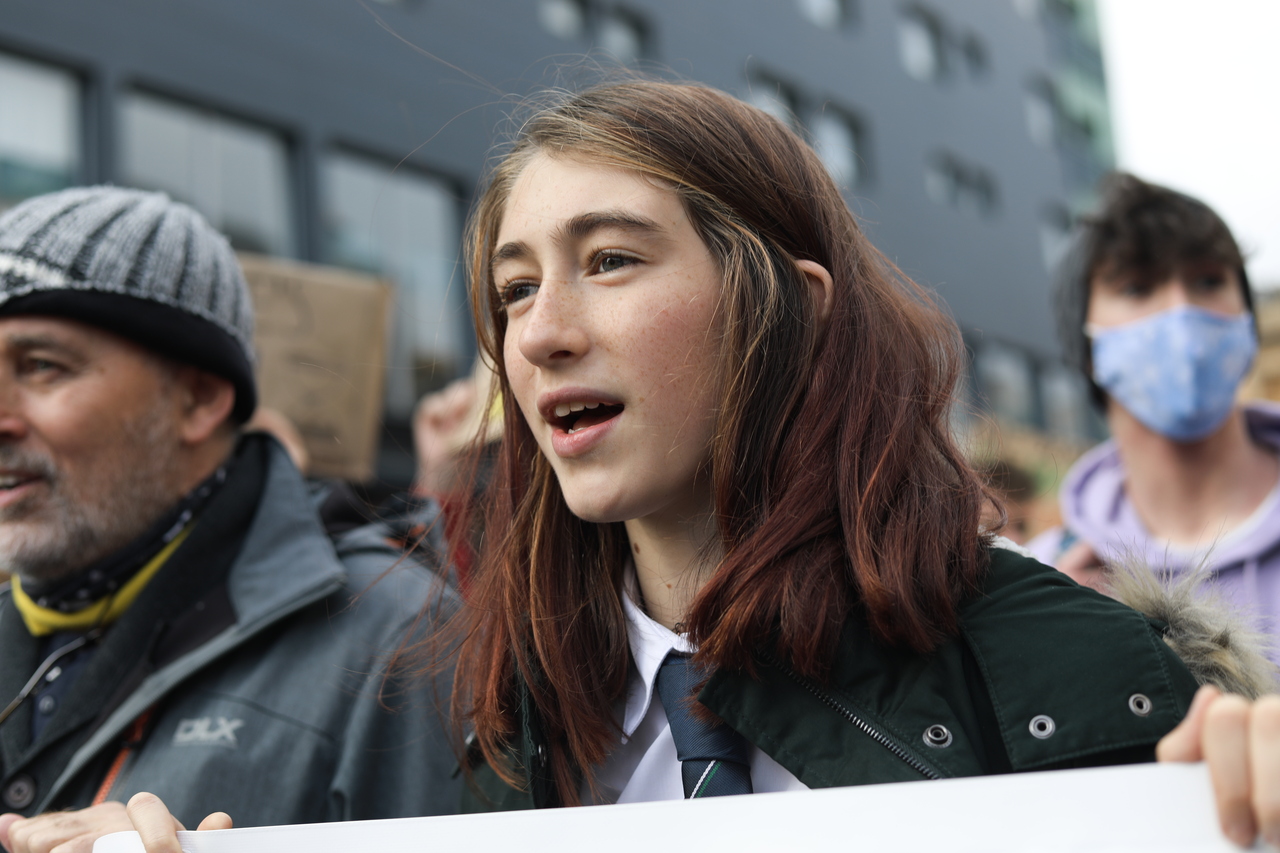 「我們現在最需要行動,而不是一直開會開會,我們現在不行動就沒時間了!」來自約旦的菈法參加第26屆氣候大會,今天抽空來到現場參加遊行,她表示很擔憂氣候變遷惡化,讓下一代無法生存。