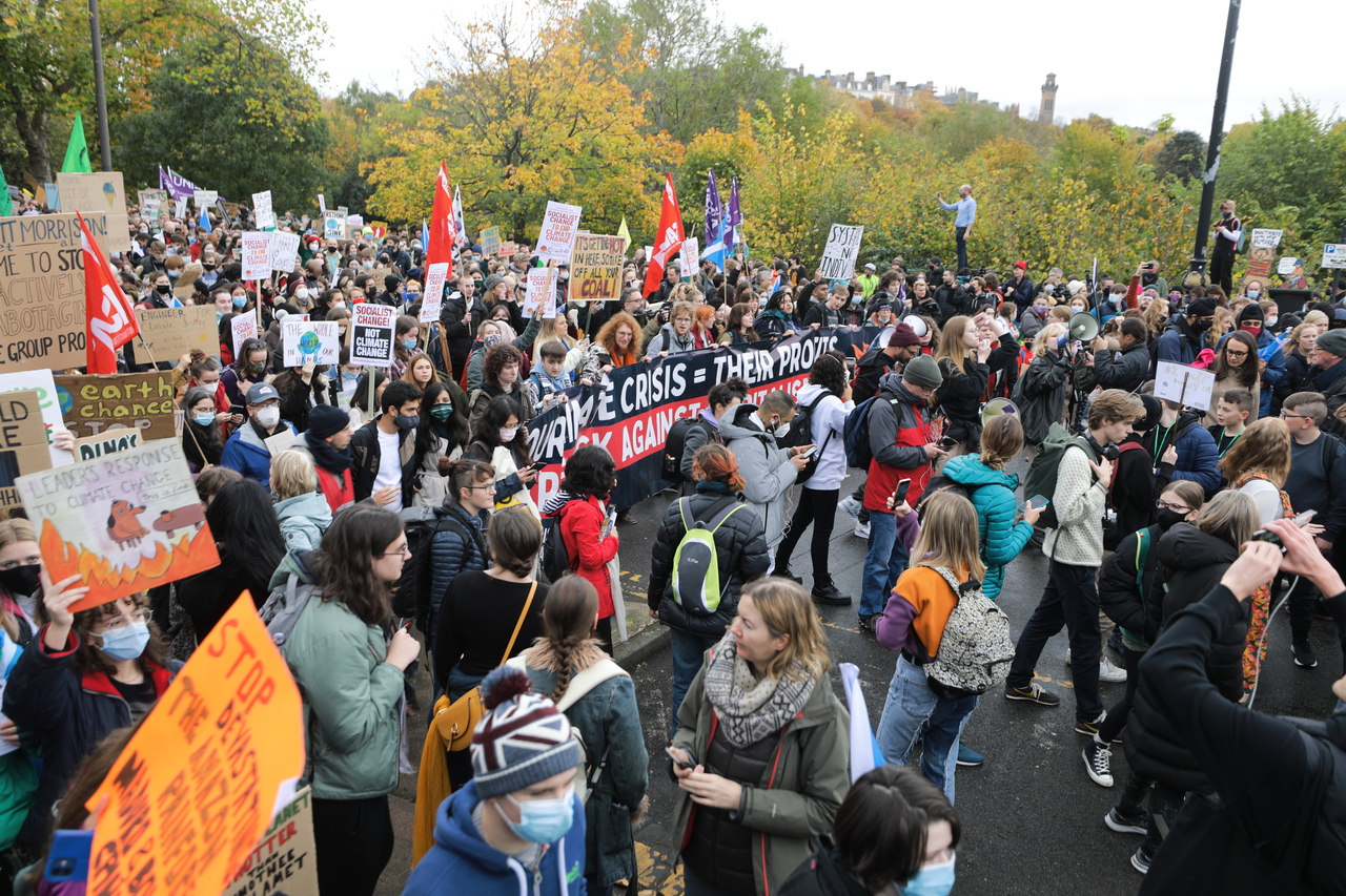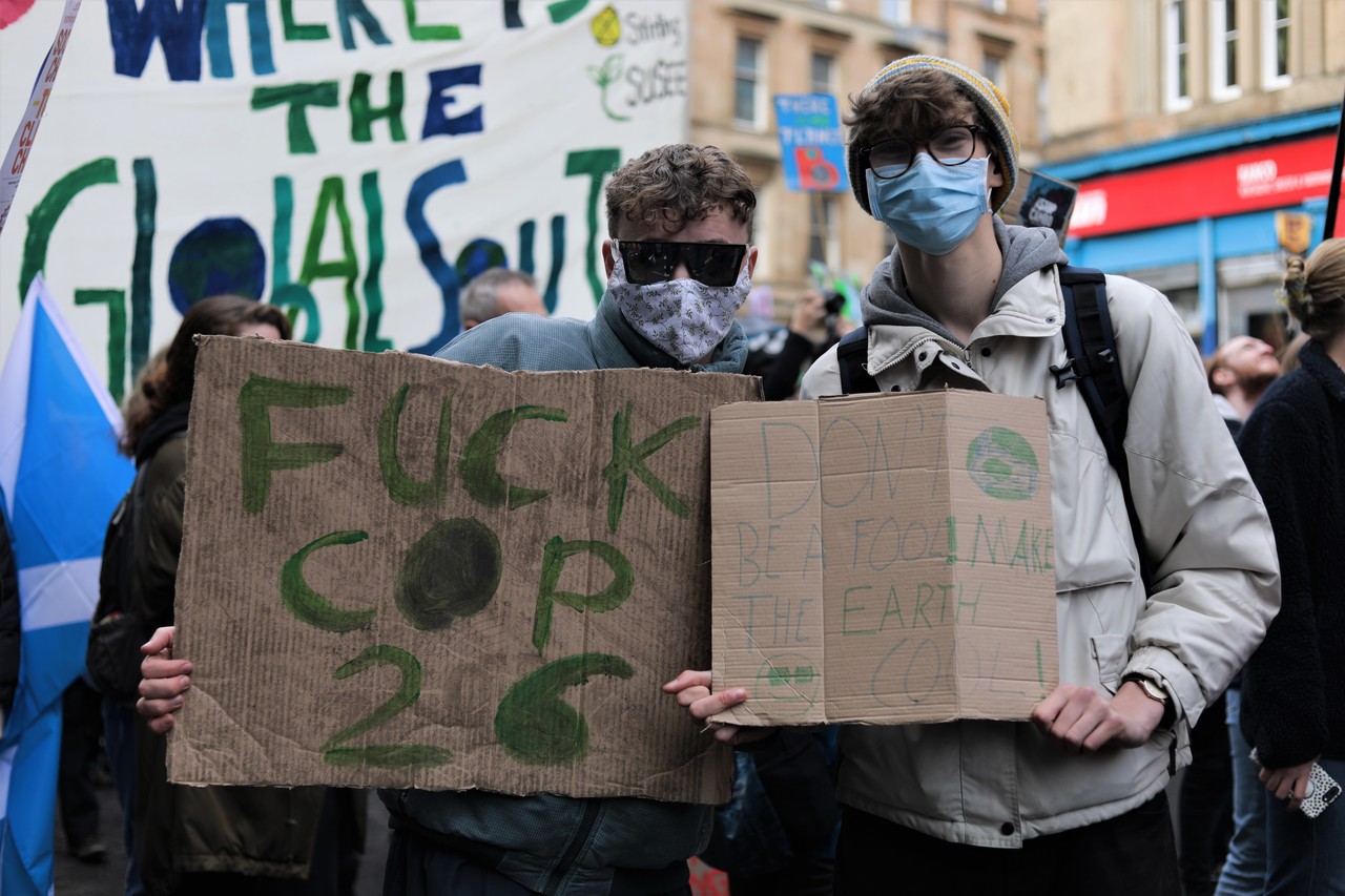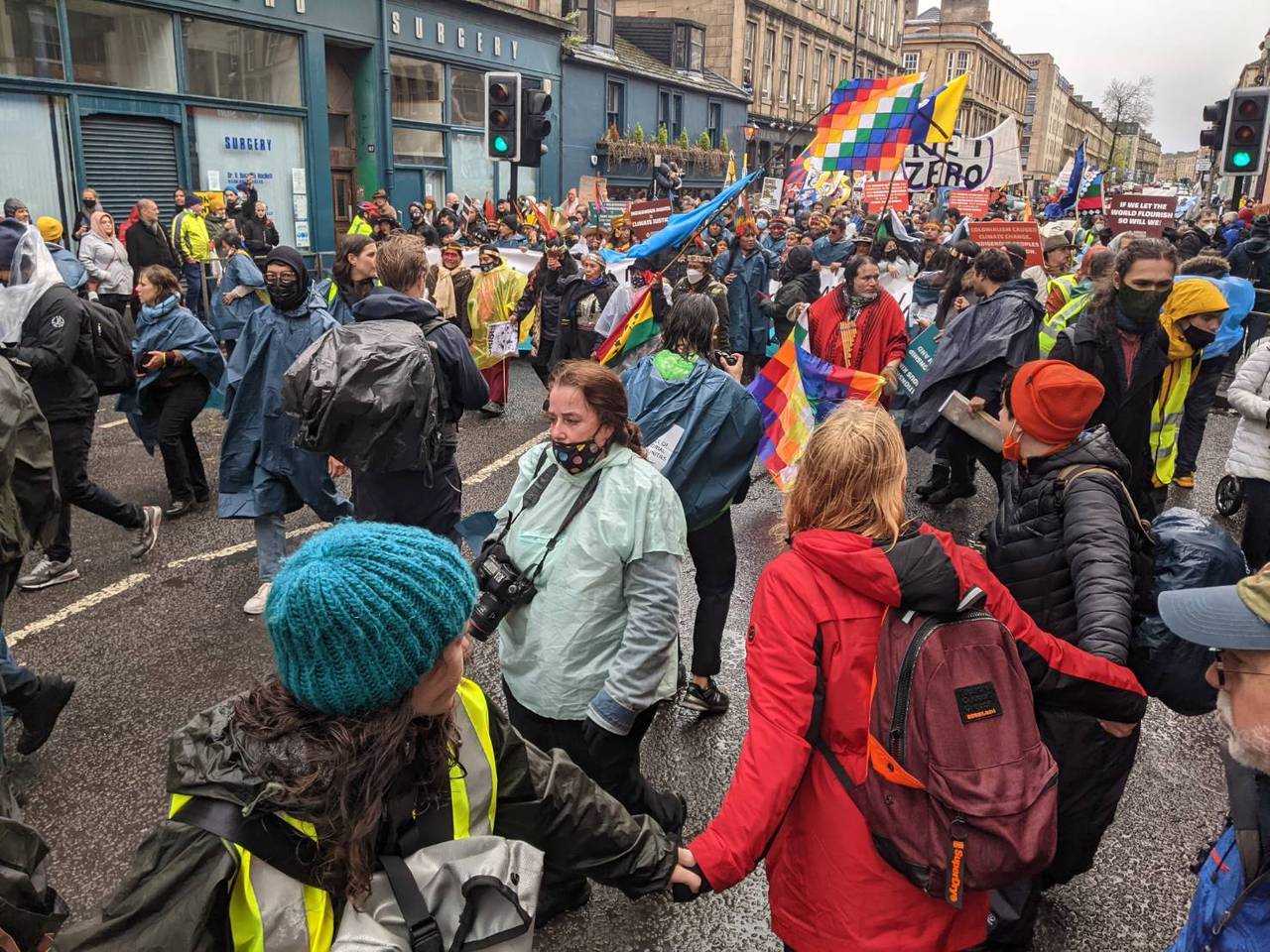 氣候大遊行正在蘇格蘭格拉斯哥舉行,環保人士與民眾全球領導人發出抗議。特派記者林奐成/攝影