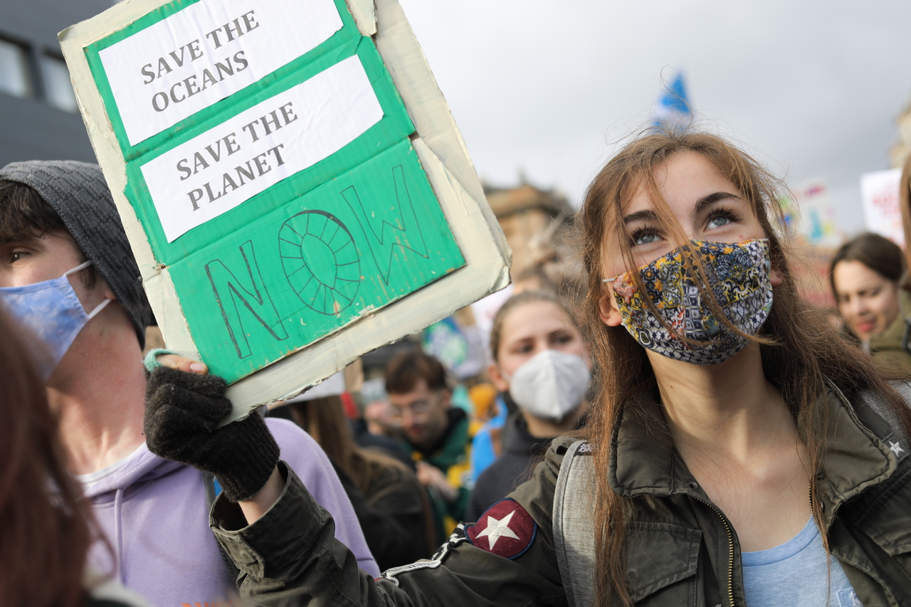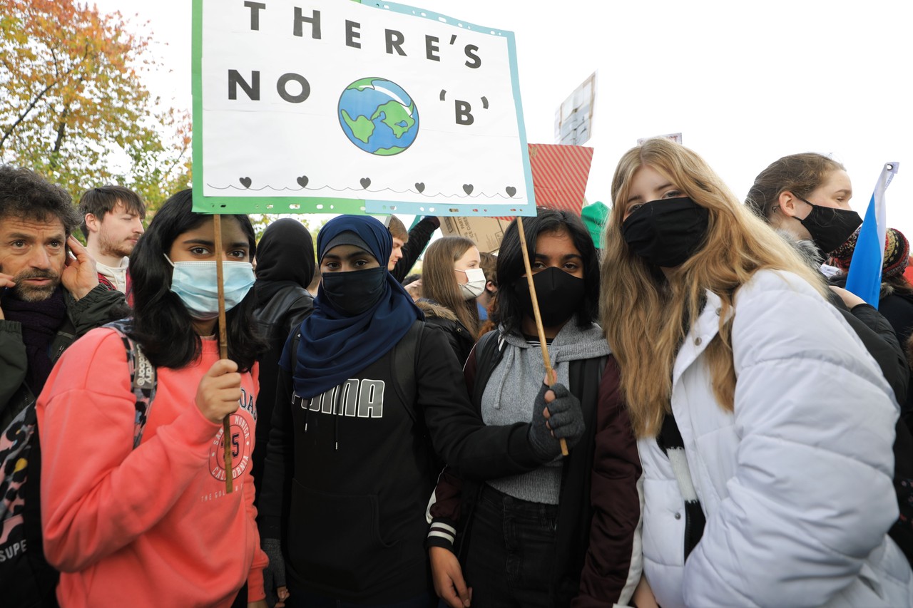 氣候大遊行正在蘇格蘭格拉斯哥舉行,來自全球的環保人士與民眾高舉「救地球」標語,向全球領導人發出抗議。南韓「正義青年黨」(Justice Youth Party)的代表穿著夯劇「魷魚遊戲」的外套來參加遊行,他們說是象徵一般老百姓的聲音,表達對南韓政府減碳不力的抗議。