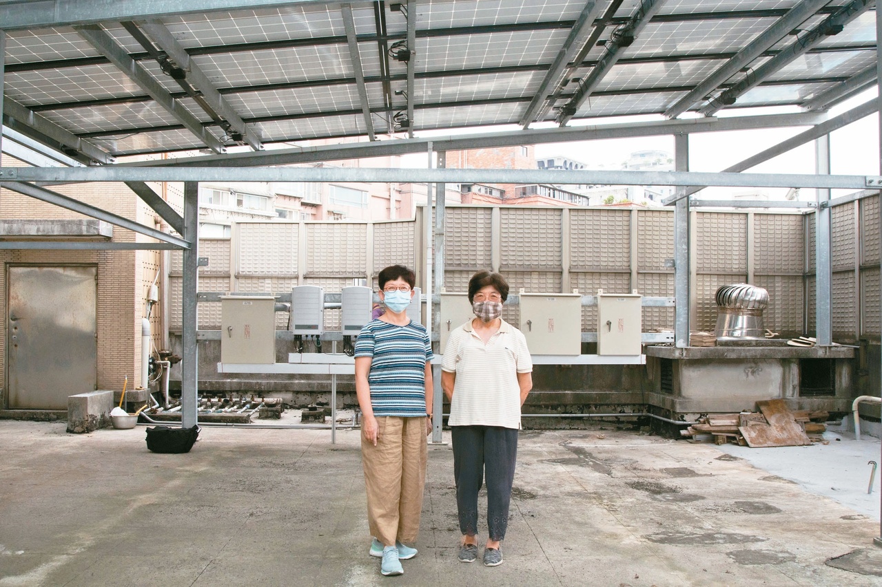 「綠主張」綠電合作社理事主席黃淑德(左)及監事主席陳慈美(右)期待政府開放更多公有屋頂,讓公民電廠遍地開花。