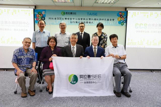 2021年5月,阿拉善SEE台灣項目中心協會攜手台灣永續能源研究基金會,承諾共同推廣環境教育、建立企業永續責任。來源:阿拉善 SEE 台灣項目中心協會與台灣永續能源研究基金會