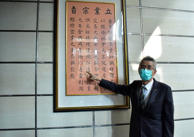 創業之初,周俊吉寫下「以適當利潤維持企業之生存與發展」的立業宗旨,至今仍掛在信義房屋總部二樓。來源:社企流
