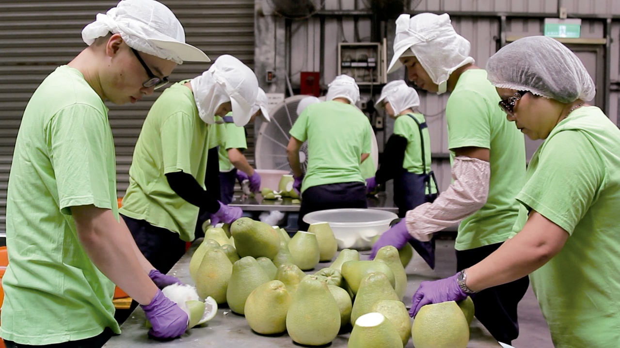 有機蔬果大小不一,需要人工去果、掏洗。圖/里仁提供