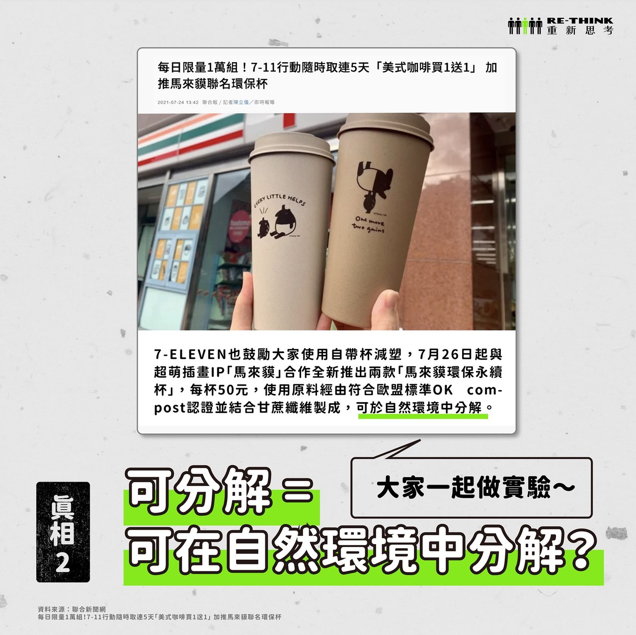 「可分解」可不是隨隨便便丟到路邊或海裡,就能像薩諾斯彈指那樣消失啊!大家可以試試看兩個月後,這個杯子是會真的分解、回歸大自然呢?還是脆化得裝不了飲料,淪落到垃圾和非垃圾之間?