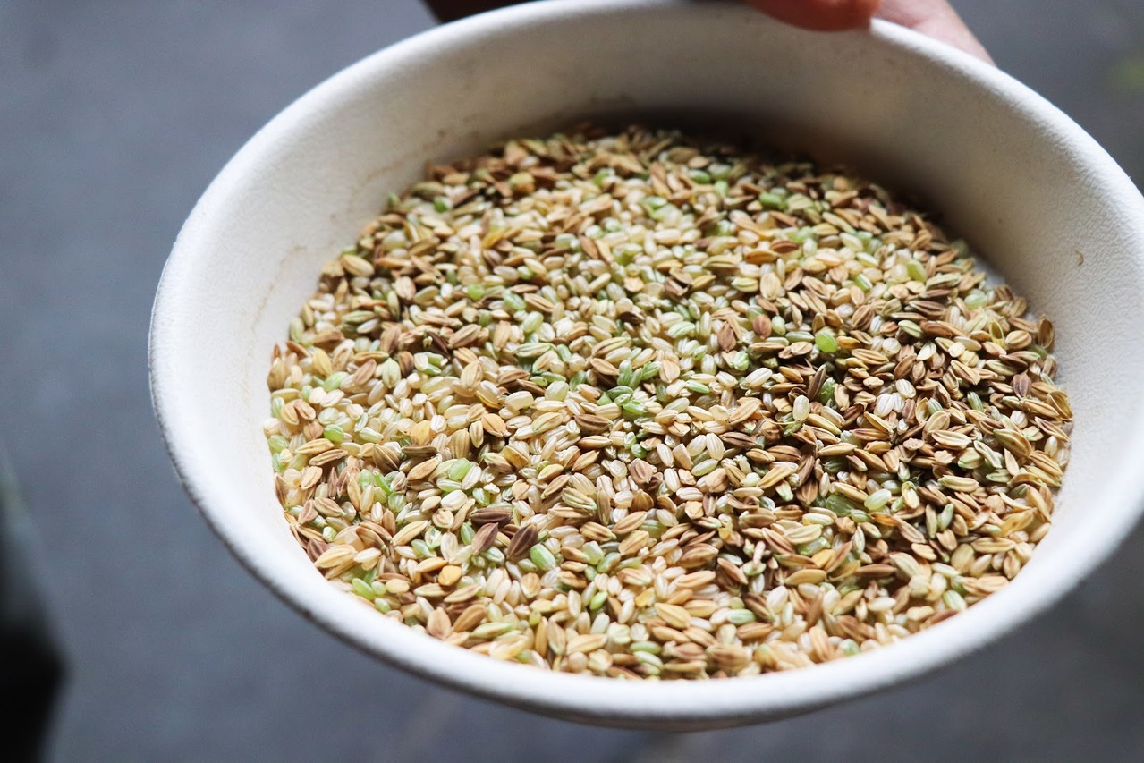 「如果說一百台斤稻穀,往年二期的話可以加工到72台斤的白米,但今(109)年最差的只有到4、50台斤。」糧商古亦煒捧起兩盆稻穀,可見正常供水下圓潤飽滿,與本期乾癟的模樣相距甚遠。也因此,往年二期稻穀一百台斤價約1,250元,此次卻是1,000至1,050元不等。