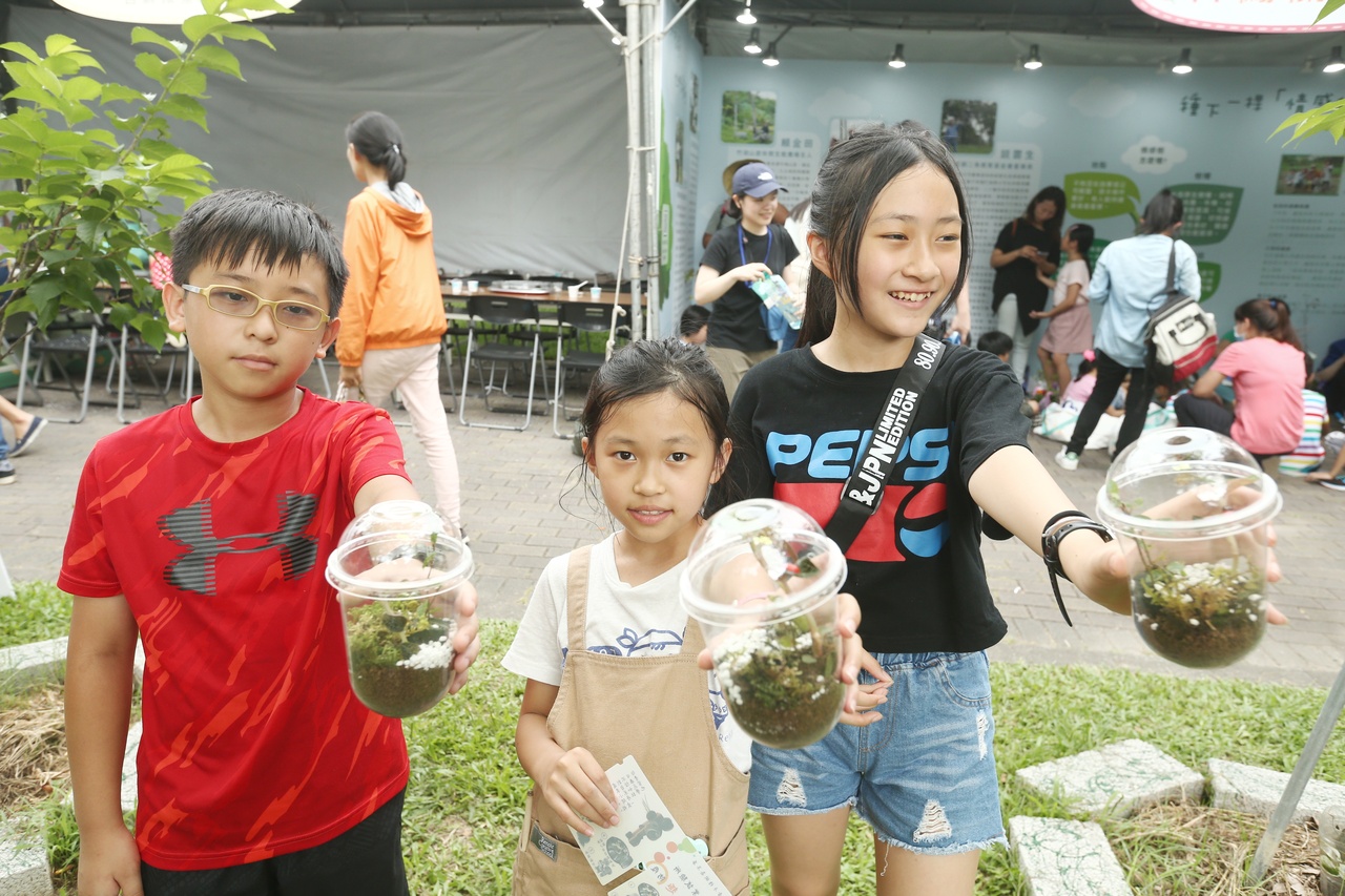 種樹嘉年華活動現場,孩子製作盆栽造景,響應環保議題。記者曾原信/攝影
