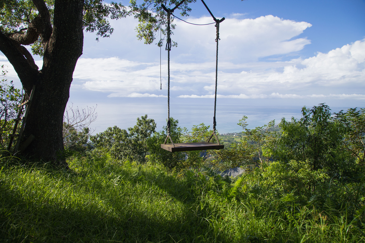 從小鞦韆變大鞦韆,即使賴家兒女現在都出外讀書,當年賴金田為他們設計的遊樂器材,卻成了遊客和營隊學童們的最愛,一躍飛天,腳底便是太平洋美景。記者許詩愷/攝影