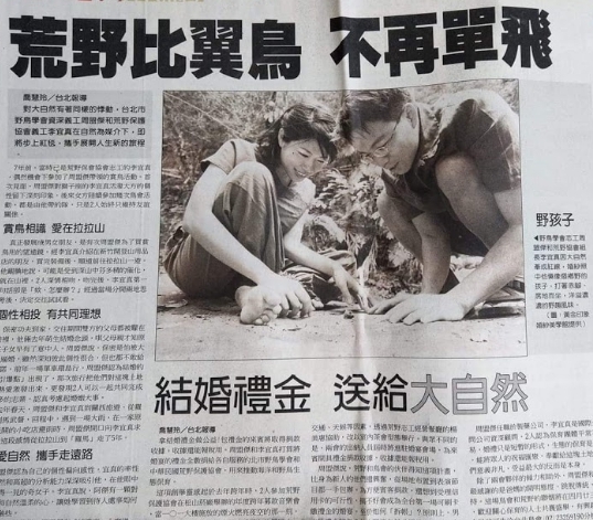 當年宜真和盟傑的環保婚禮,禮金也是捐給生態保育,登上報紙。