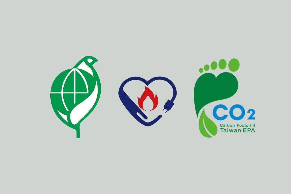 由左至右分別為「環保標章」、「節能標章」、「碳足跡標籤」。圖/綠藤生機提供