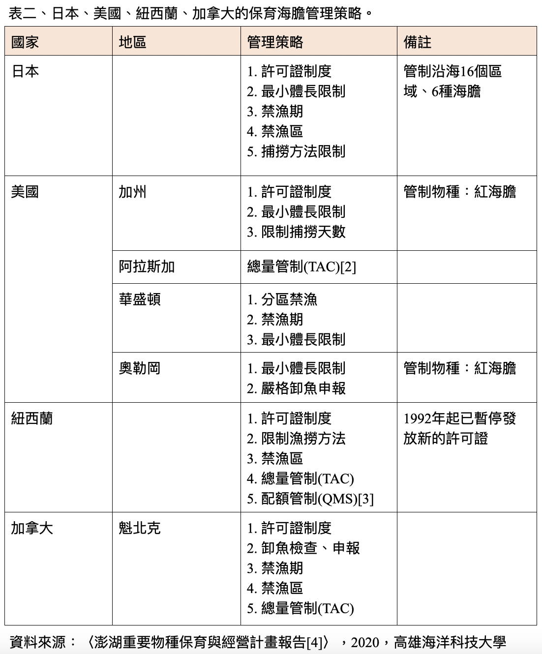 國際保育海膽政策:總量管制、許可證制度與捕撈限制