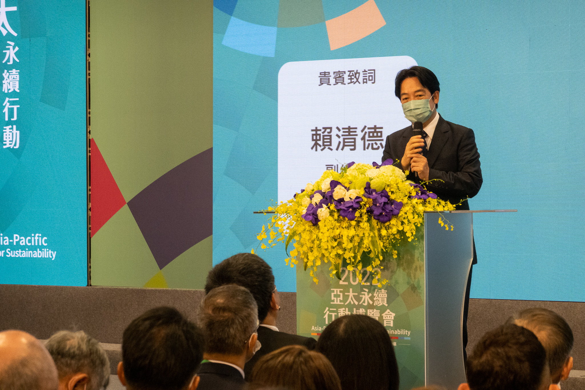 賴清德表示,「對於氣候變遷我們已經談了不少,現在就是時候(採取行動)」,去年世界地球日政府宣布台灣2050淨零排放目標,今年三月提出淨零排放路徑,要在科技研發及氣候法制基礎上,達成能源、產業、生活與社會四大轉型,並投入台幣九千億元資金。