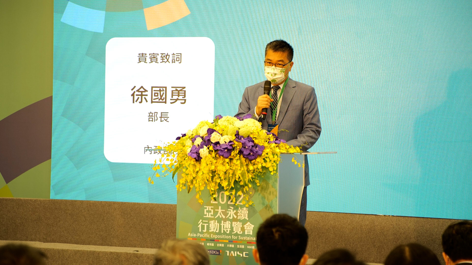 內政部長徐國勇也擔任亞太暨台灣永續行動獎頒獎貴賓並致詞。記者蔡宗儒/攝影