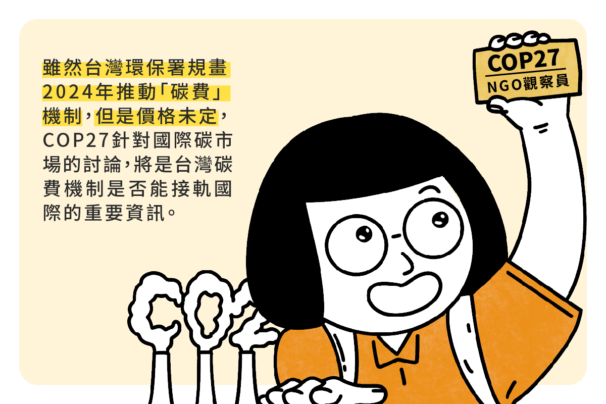 去年COP26各國拍板《巴黎協定》第六條,確立國際間的碳市場機制;COP27針對國際碳市場的討論,仍攸關台灣未來的碳定價機制能否接軌國際。