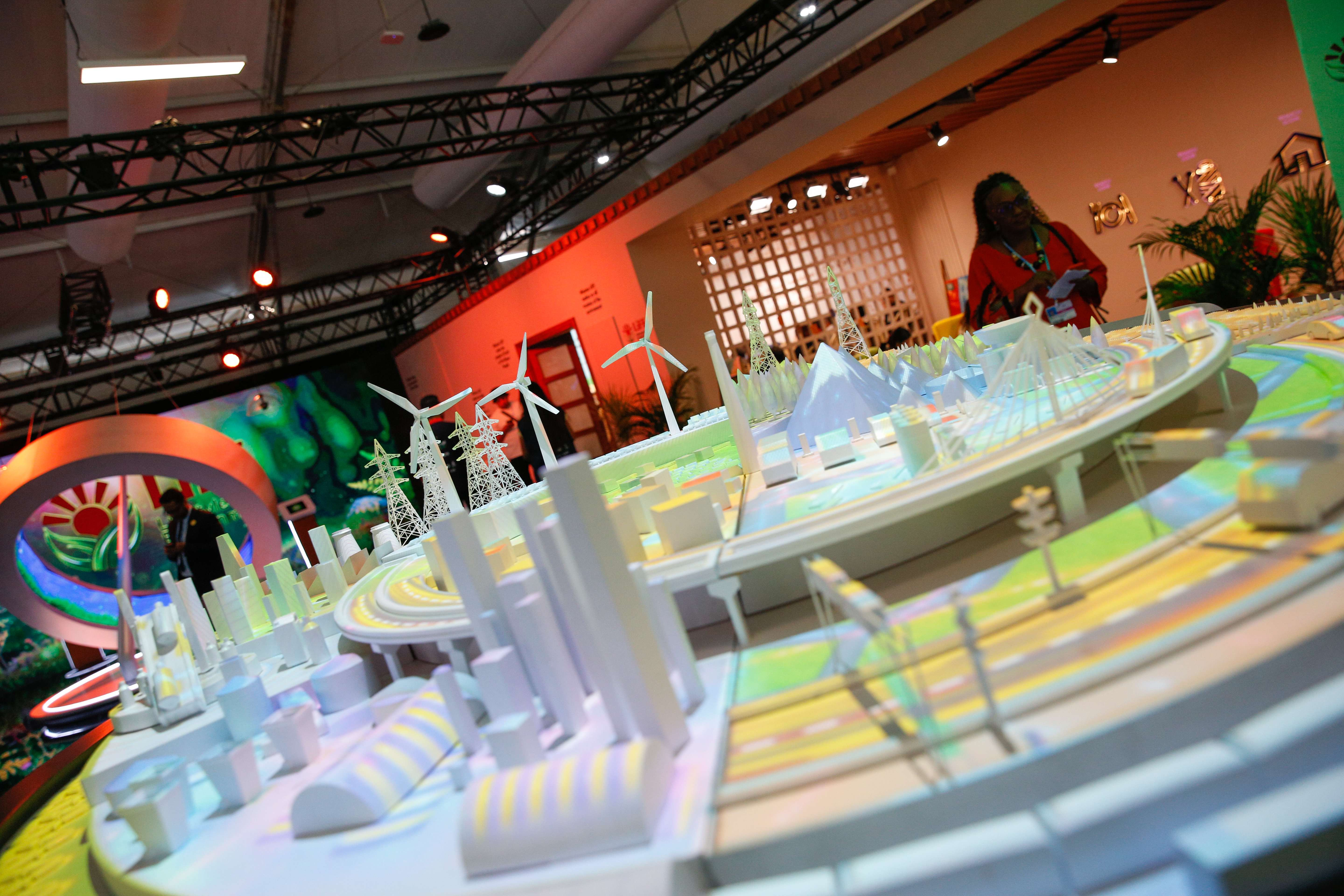 COP27氣候峰會展場展示再生能源建設的城市模型。攝影/Kiara Wort(UNFCCC提供)