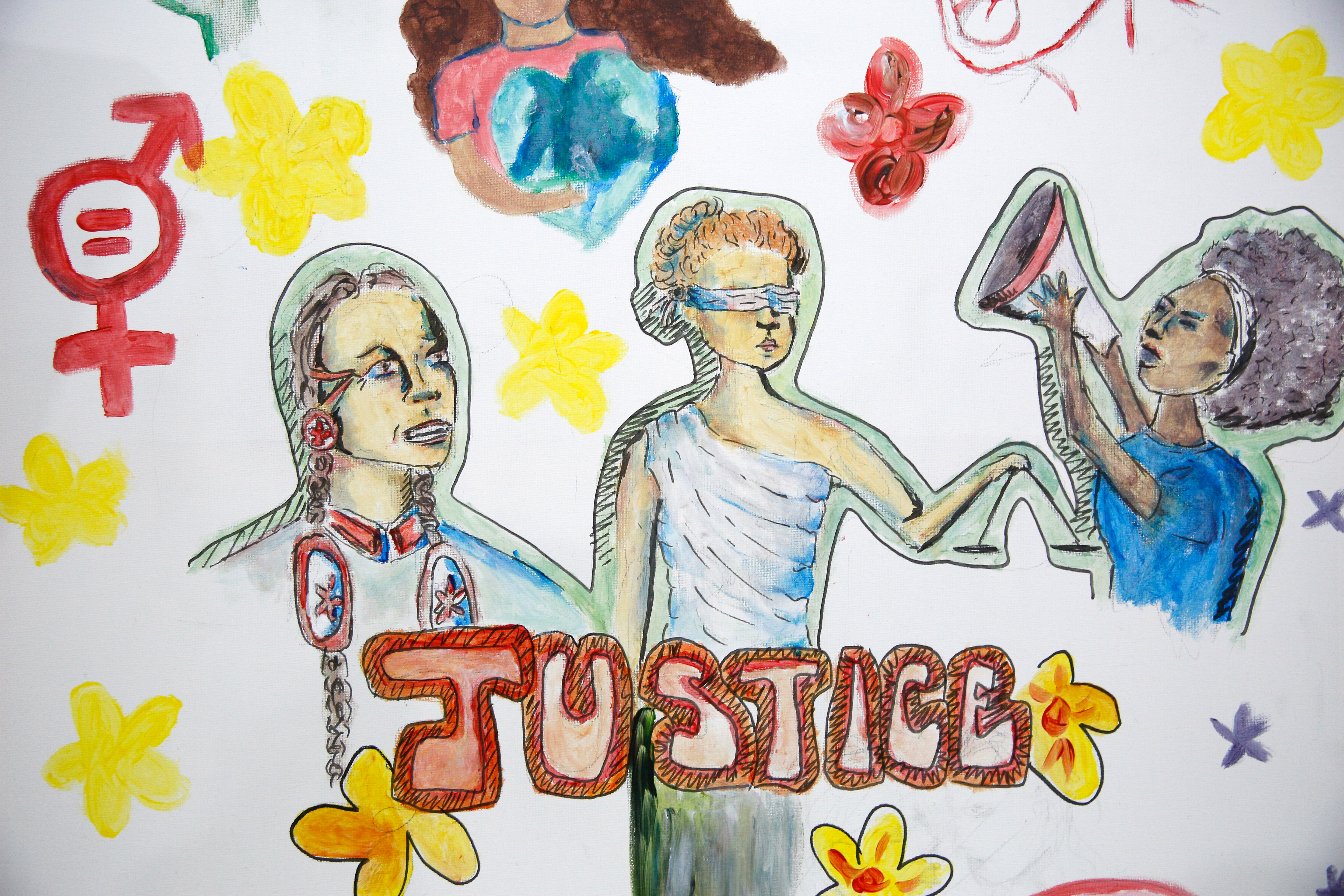 COP27氣候峰會展場,展示一幅倡議氣候正義倡議的繪畫作品。攝影/Kiara Wort(UNFCCC提供)