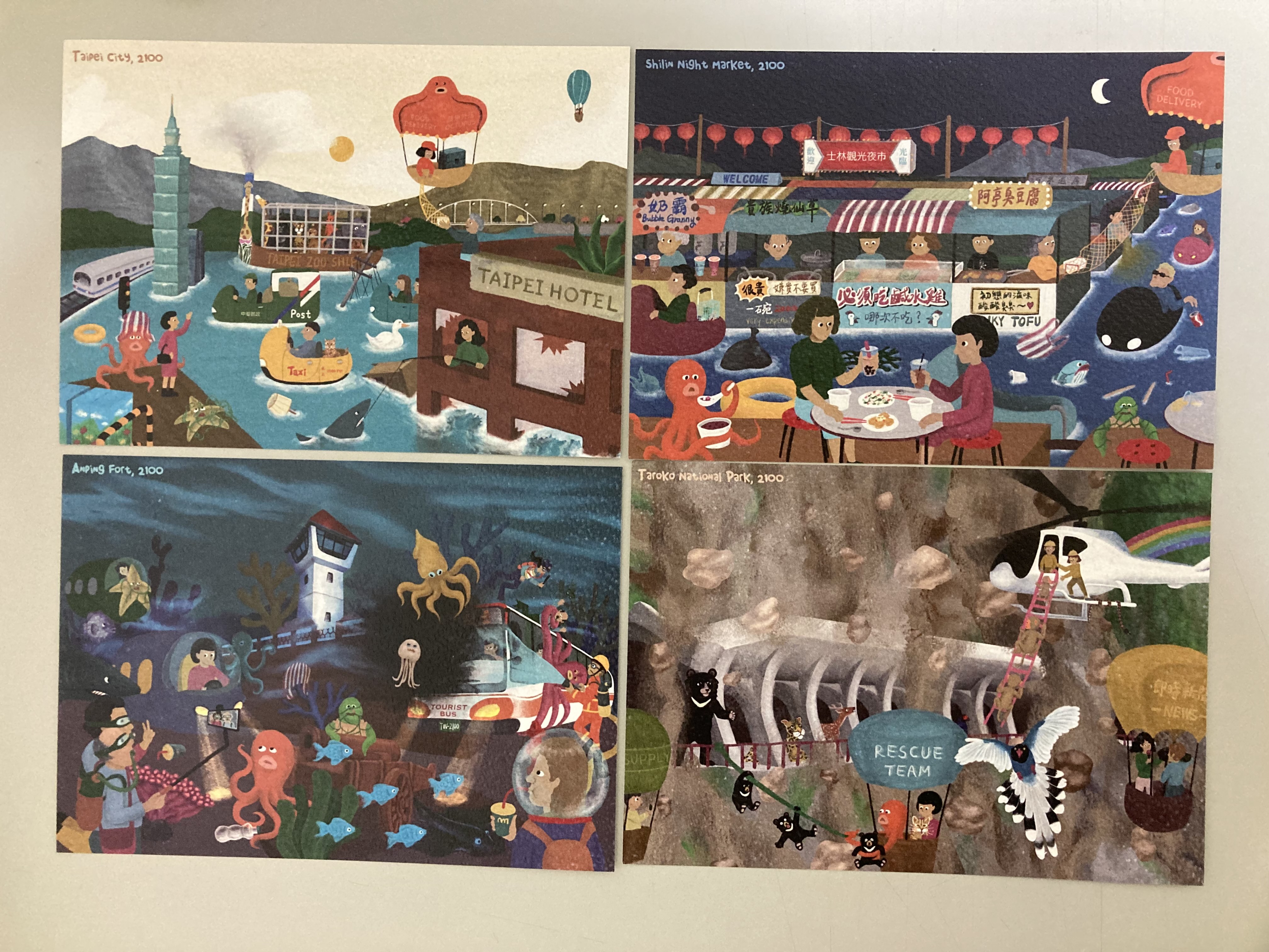 TWYCC過去根據聯合國預測結果,製作的氣候科幻明信片。圖/台灣青年氣候聯盟COP27代表團
