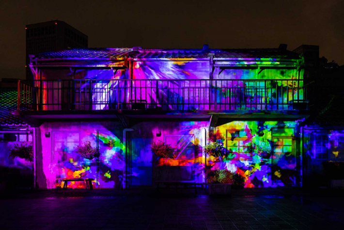 藉由光雕作品,投影在四四南村的老建築上,讓藝術走入民眾日常。圖/取自LIGHT UP 南村有光