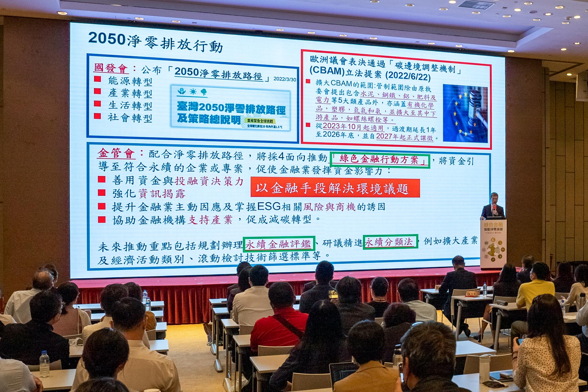 金管會副主委蕭翠玲說,政府2022年提出《綠色金融行動方案3.0》,要求金融機構驅動企業淨零轉型,鼓勵金融業者掌握投融資對象碳排量及減碳規畫。