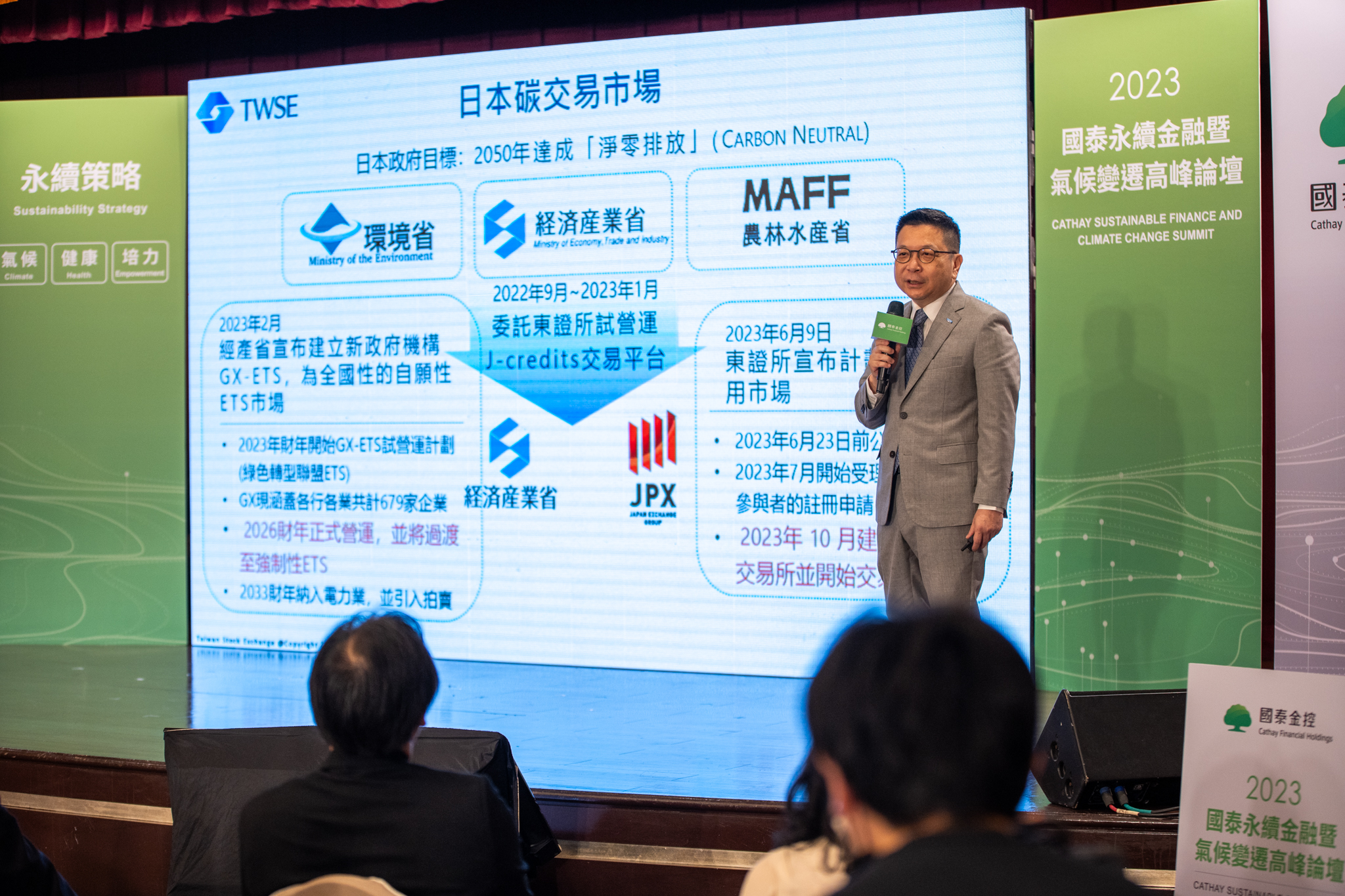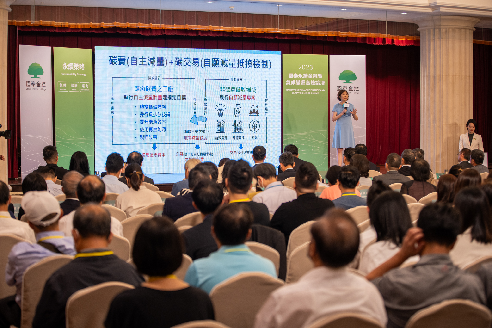 國泰金控與台灣證交所主辦的「永續金融暨氣候變遷高峰論壇」4日登場,聚集官員、企業等,共商台灣減碳轉型政策及解方。據國泰金控估計,線上、線下共四千多人參與,當天「參與的上市櫃公司,(每年的)碳排放量超過全台總排碳量的50%」。