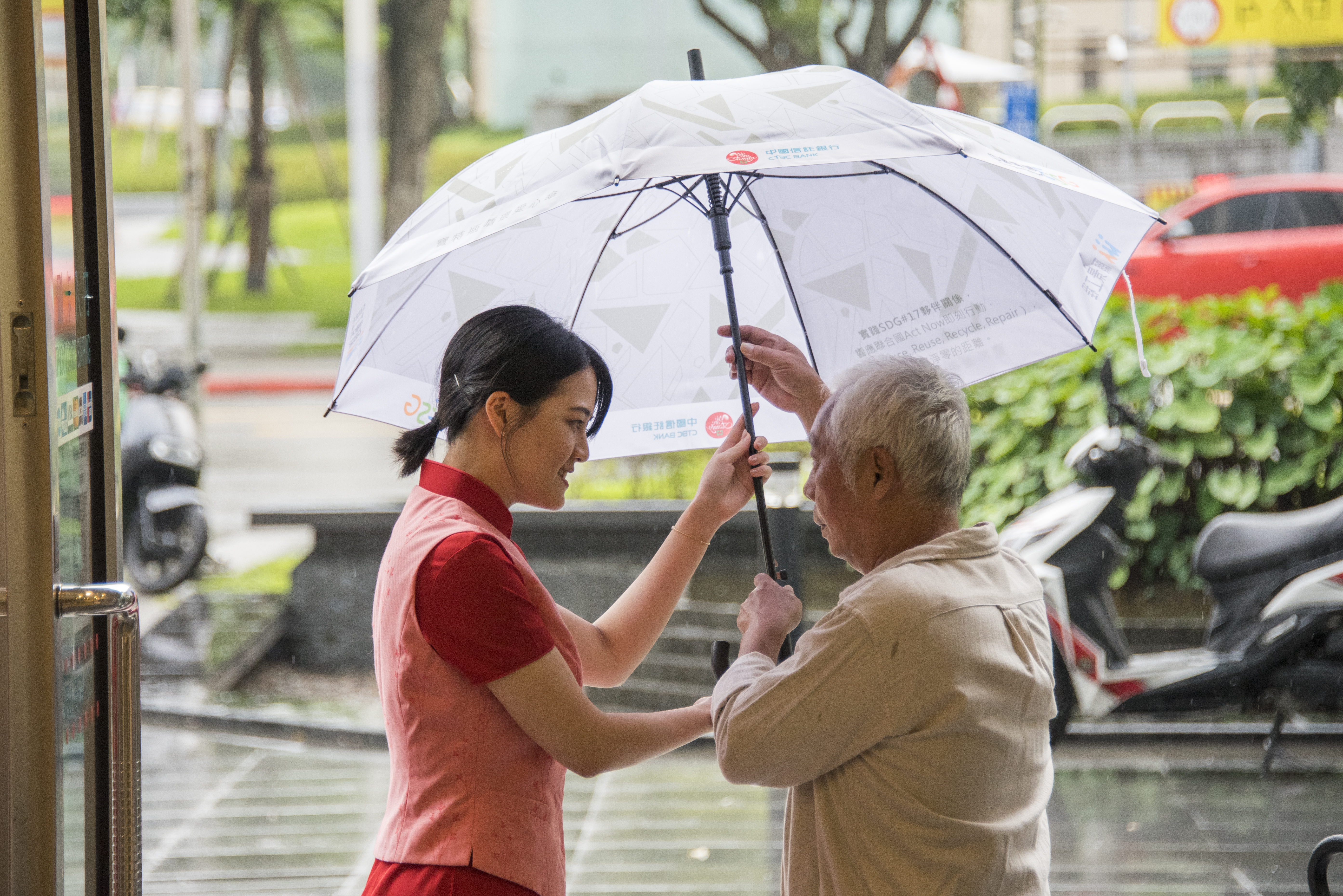 早上還熱得要人命,午後雷雨就無預警轟炸,若緊急買新傘,傷荷包、還會增加十公斤排碳量。九月起,臨時無傘時,可以走到鄰近中國信託銀行、中華電信門市,6,000支「寶特瓶循環愛心傘」等著讓人應急。