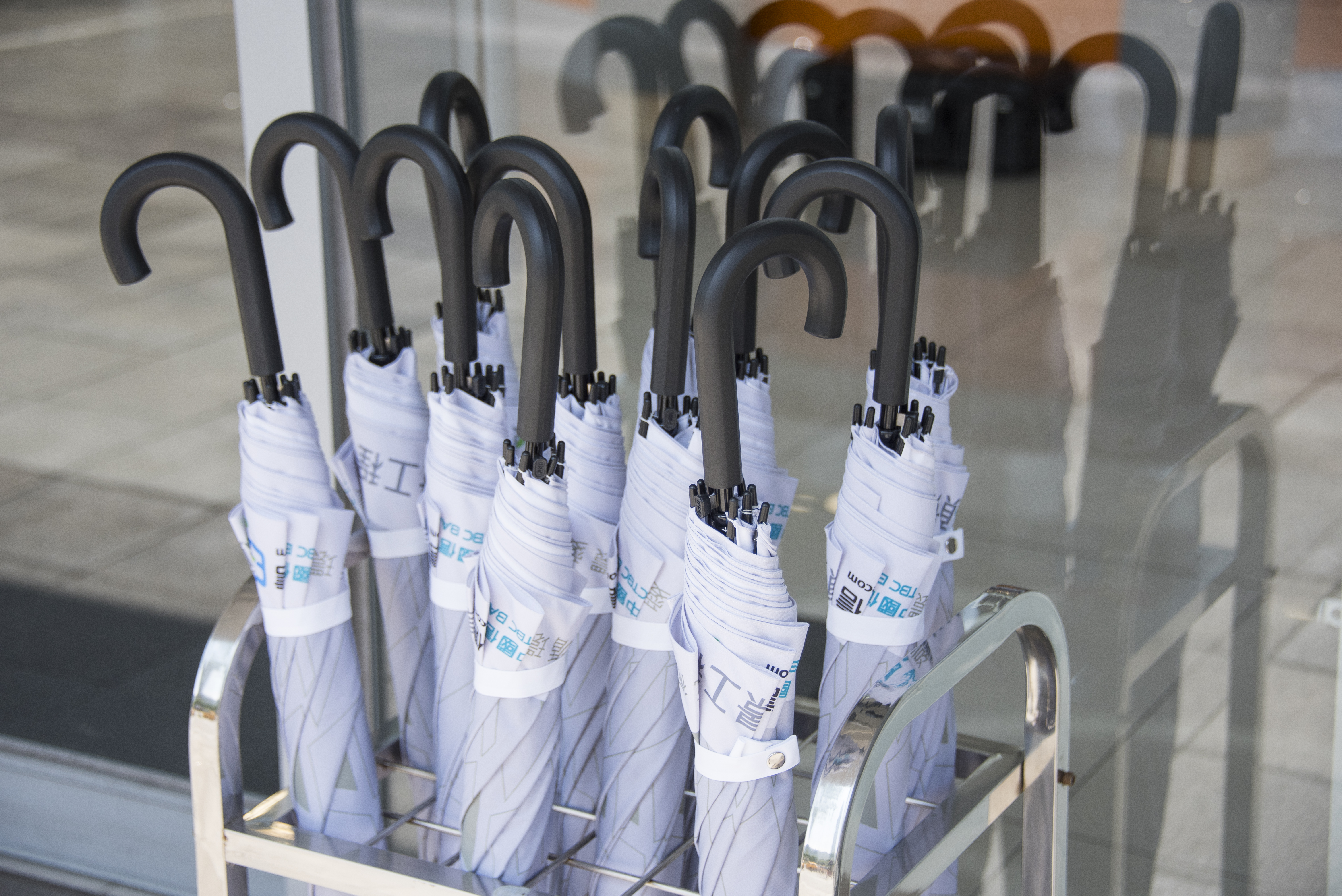 企業回收寶特瓶製成愛心傘,首創跨企業免費借還服務,九月起6000把「寶特瓶循環愛心傘」將在全台近600個分行/門市,提供臨時有需求的民眾借用。攝影/蔡宗儒