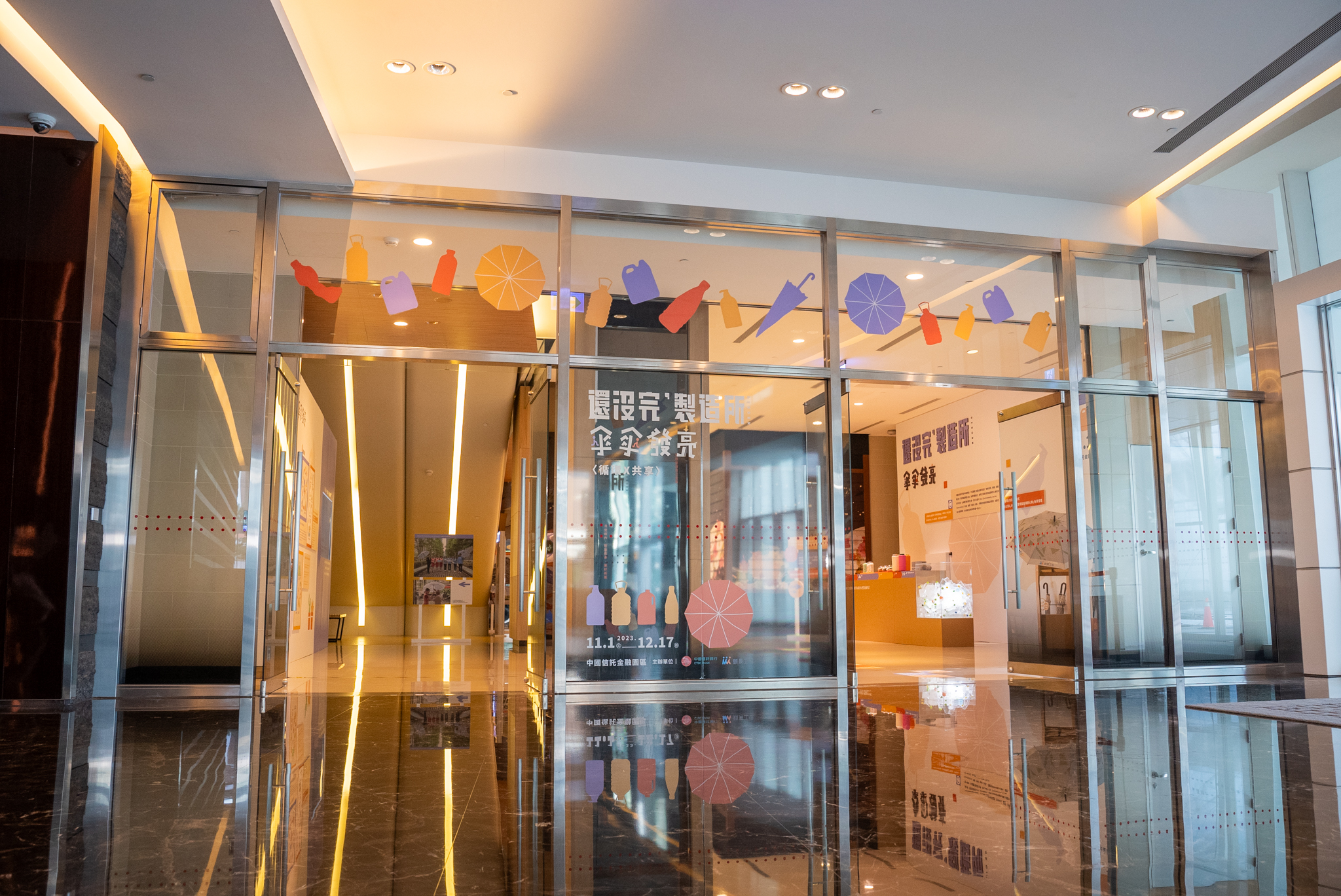 「還沒完,製造所 —傘傘發亮特展」南港中信園區A棟1樓入口。攝影/蔡宗儒