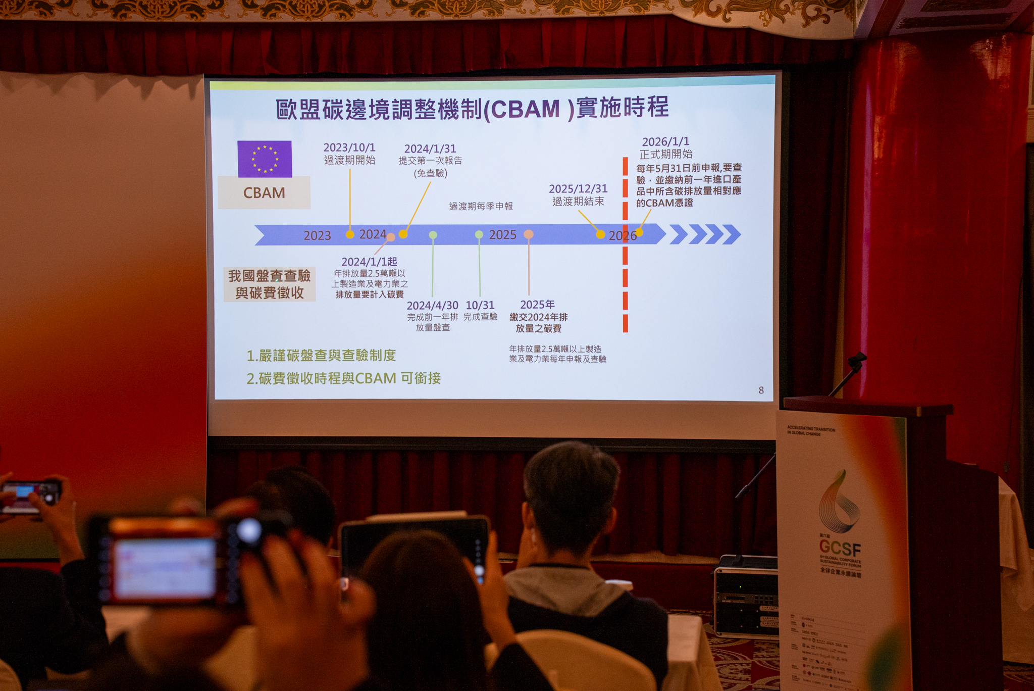 歐盟碳邊境調整機制(CBAM)自10月起上路,衝擊出口導向的台灣產業。15日,GCSF全球企業永續論壇中的「碳權、碳關稅及碳交易」場次座無虛席,甚有與會者在會場後方席地而坐,足見企業對這個議題的迫切需求。