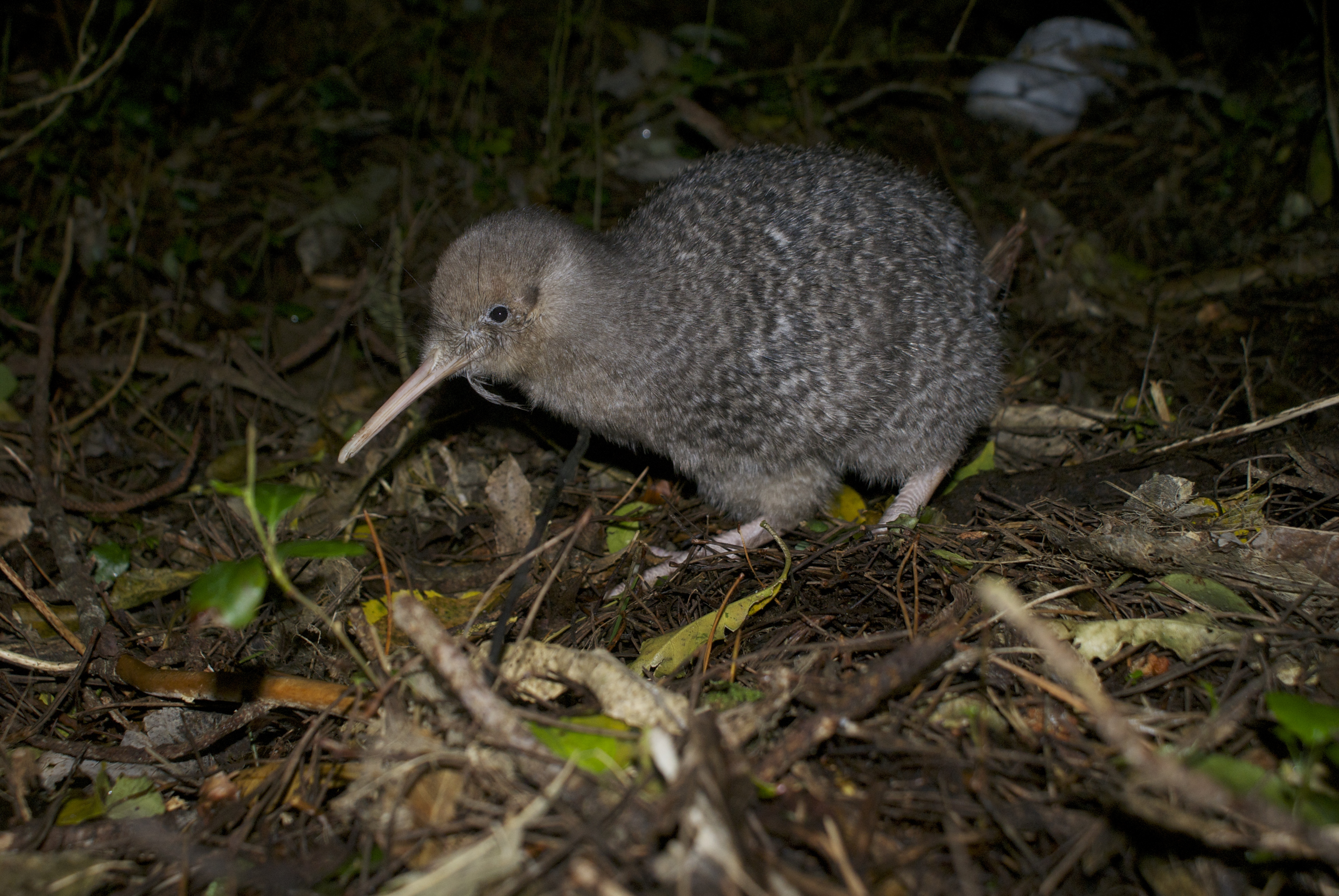 西蘭蒂亞生態保護區的幼年小斑奇異鳥 (Apteryxowenii)。圖片來源/Kimberley Collins
