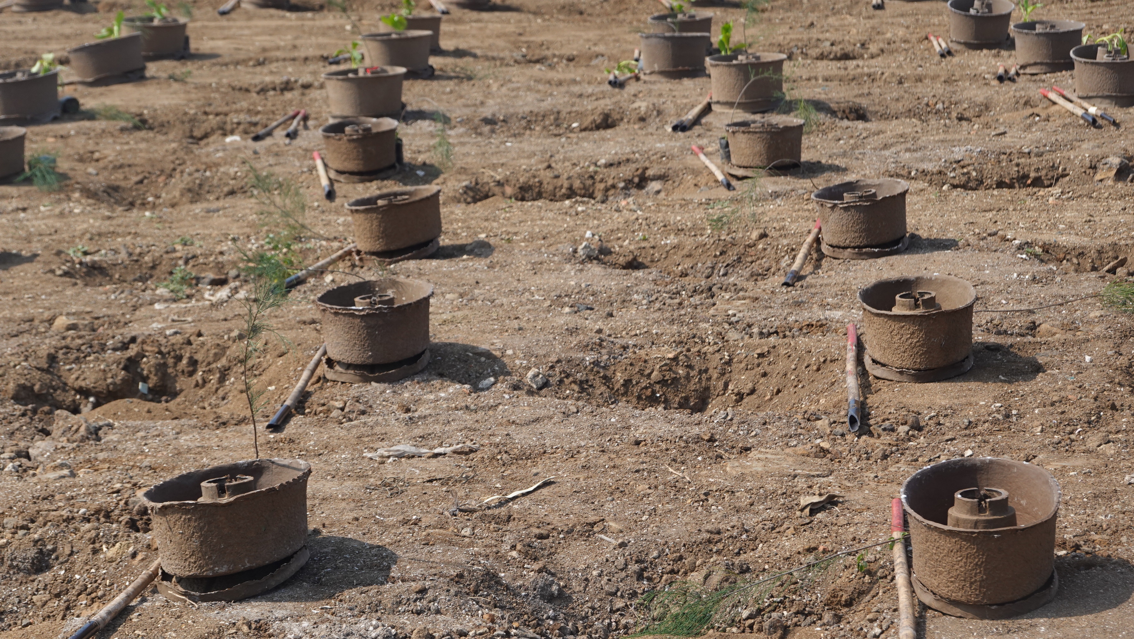 水寶盆的外型如同元寶,具有防止蒸散、自動澆灌功能,有效提高植樹存活率、減少澆灌人力成本。攝影/孫文臨