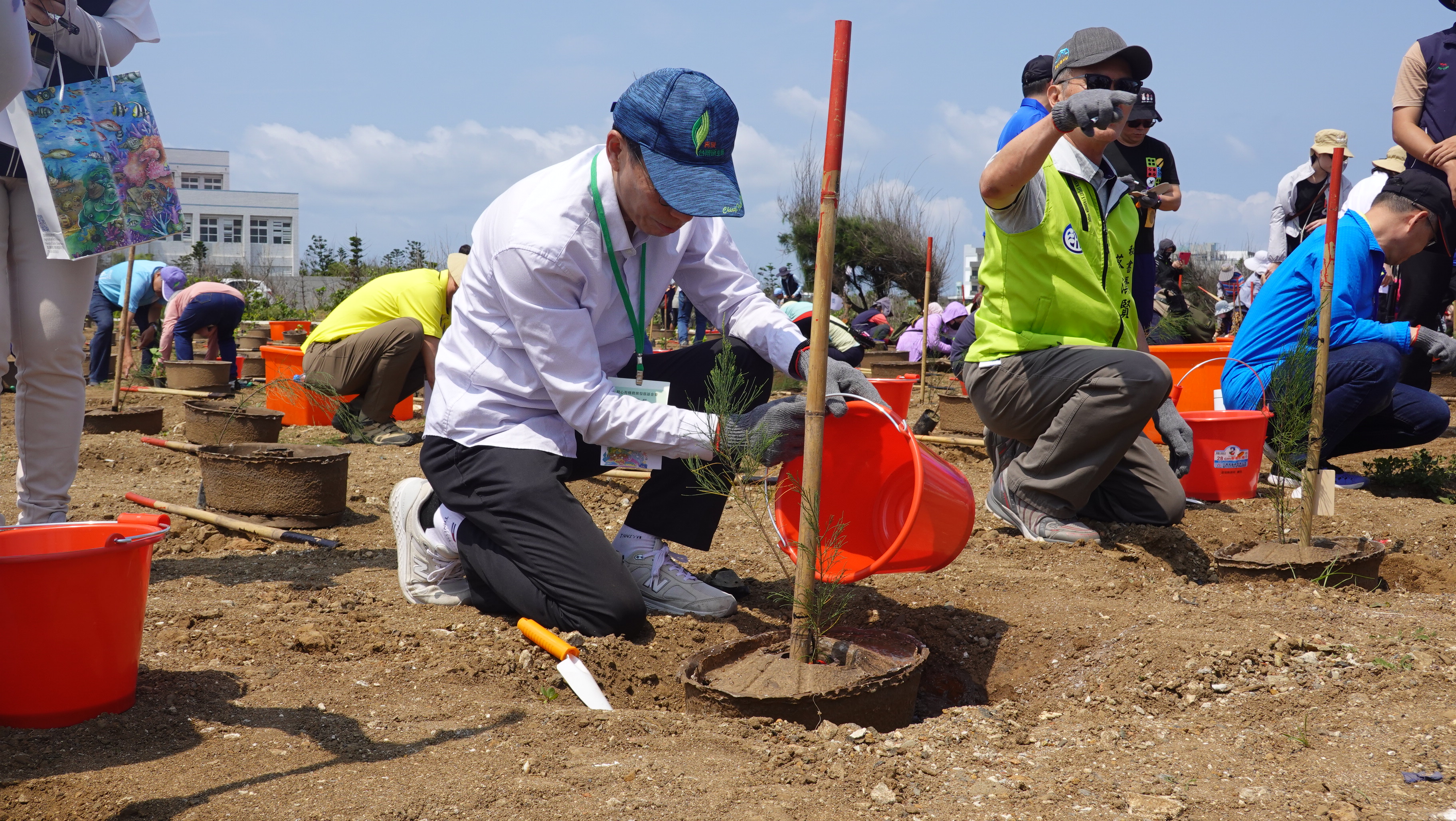 這次選擇的樹種也經過精心設計,將較能抵擋強風的草海桐、木麻黃、白水木等種在近海側迎風面的第一線,後方則搭配種植小葉南洋杉、苦楝、水黃皮、土沉香、苦林盤等15種樹木,提高樹種豐富度及栽植密度,提供不同的生態功能,也可以避免林相單一的問題。