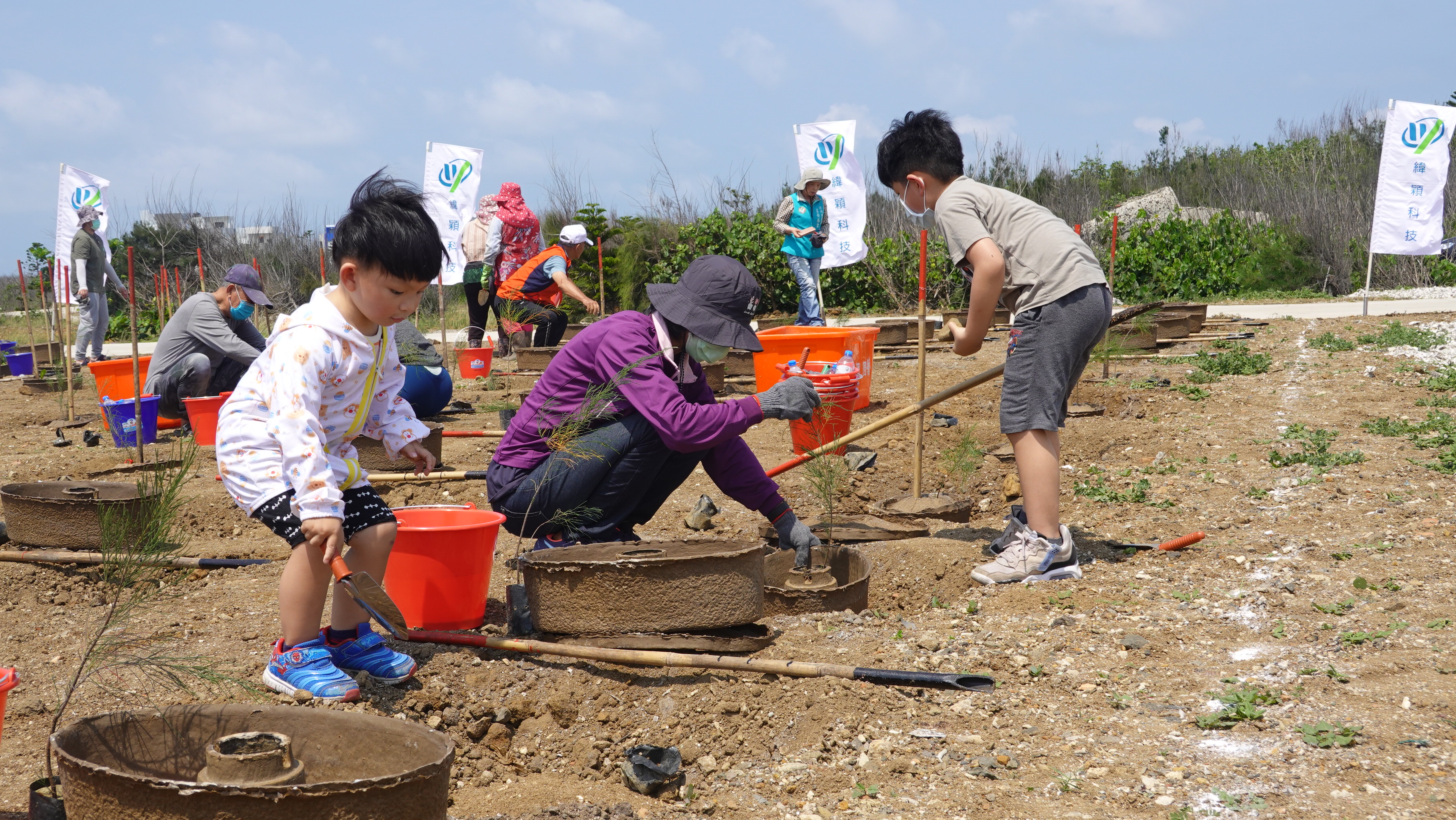有許多家長帶著孩子一起來參與植樹的工作。攝影/孫文臨