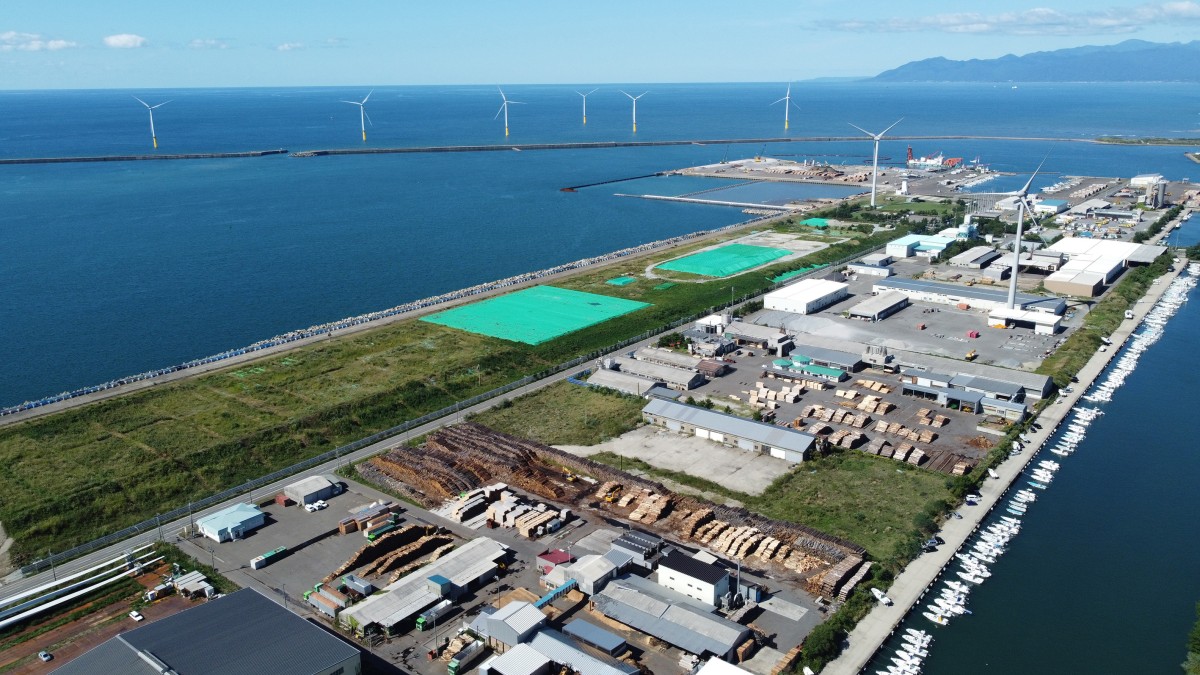 三菱商事因風機成本飆升與供應鏈壓力退出離岸風電計畫,凸顯日本能源轉型面臨重大挑戰。圖為日本秋田縣能代港及離岸風電。圖片來源/Wikimedia Commons