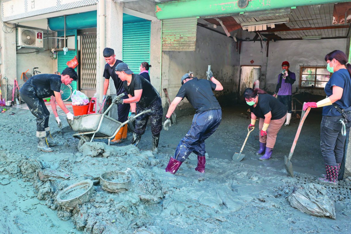 颱風「樺加沙」引發花蓮馬太鞍溪上游堰塞湖溢流,洪水夾帶土石重創下游城鎮,災後志工湧入災區協助清理,被稱為「鏟子超人」。記者葉信菉/攝影