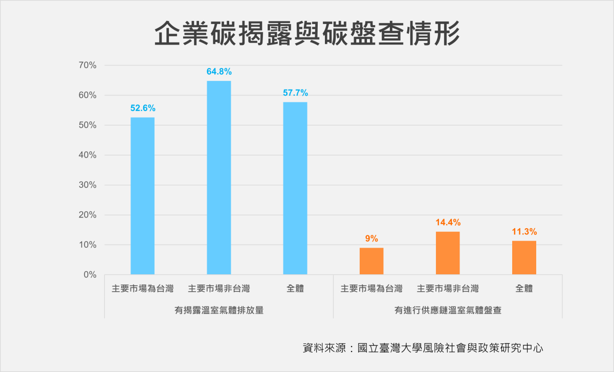相對地,台灣的中小企業多是大企業的供應商、目標市場以本地為主,因此,多數僅受到客戶要求進行碳盤查,不太被國際檢視企業內部的永續目標,在永續資訊揭露上的動力也有限。