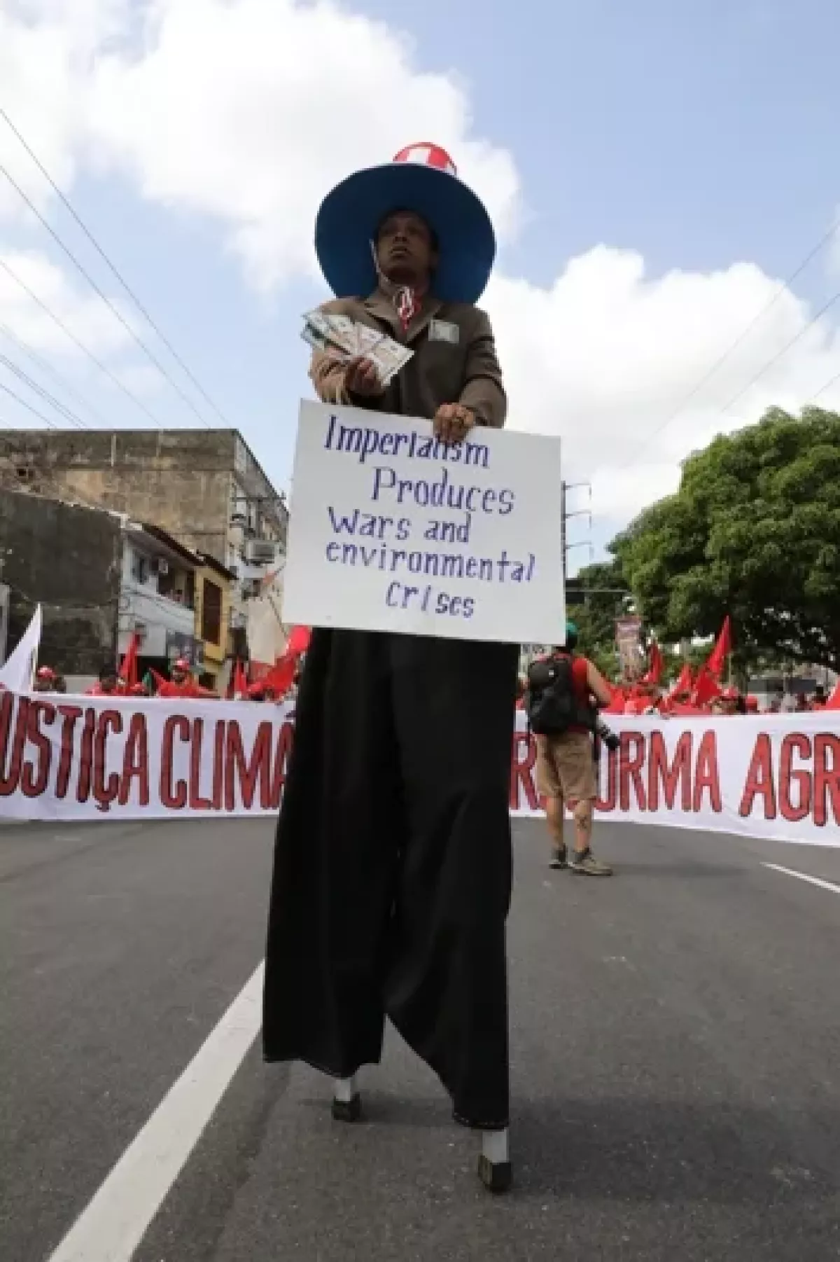 不過,也有原住民表達沉痛訴求,來自亞馬遜雨林地區的29歲青年艾里爾是蒙杜魯庫族原住民(Munduruku),不滿大型農業企業入侵原住民傳統土地,憤怒地說:「我們正在為我們的權利而戰,別再搞大豆種植、採礦和剝削人民了。他們必須尊重我們,尊重原住民。」