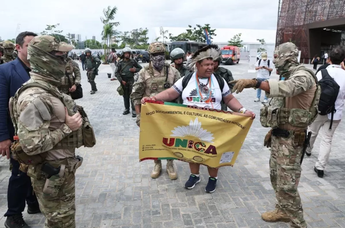 巴西時間14日,聯合國氣候峰會進入第5天,抗爭衝突再次升溫,一早就有約50名來自亞馬遜地區的蒙杜魯庫族原住民(Munduruku)和國際環團人士,聯手阻擋峰會藍區的入口,要求與巴西總統魯拉對話,表達原住民族面對的困境。